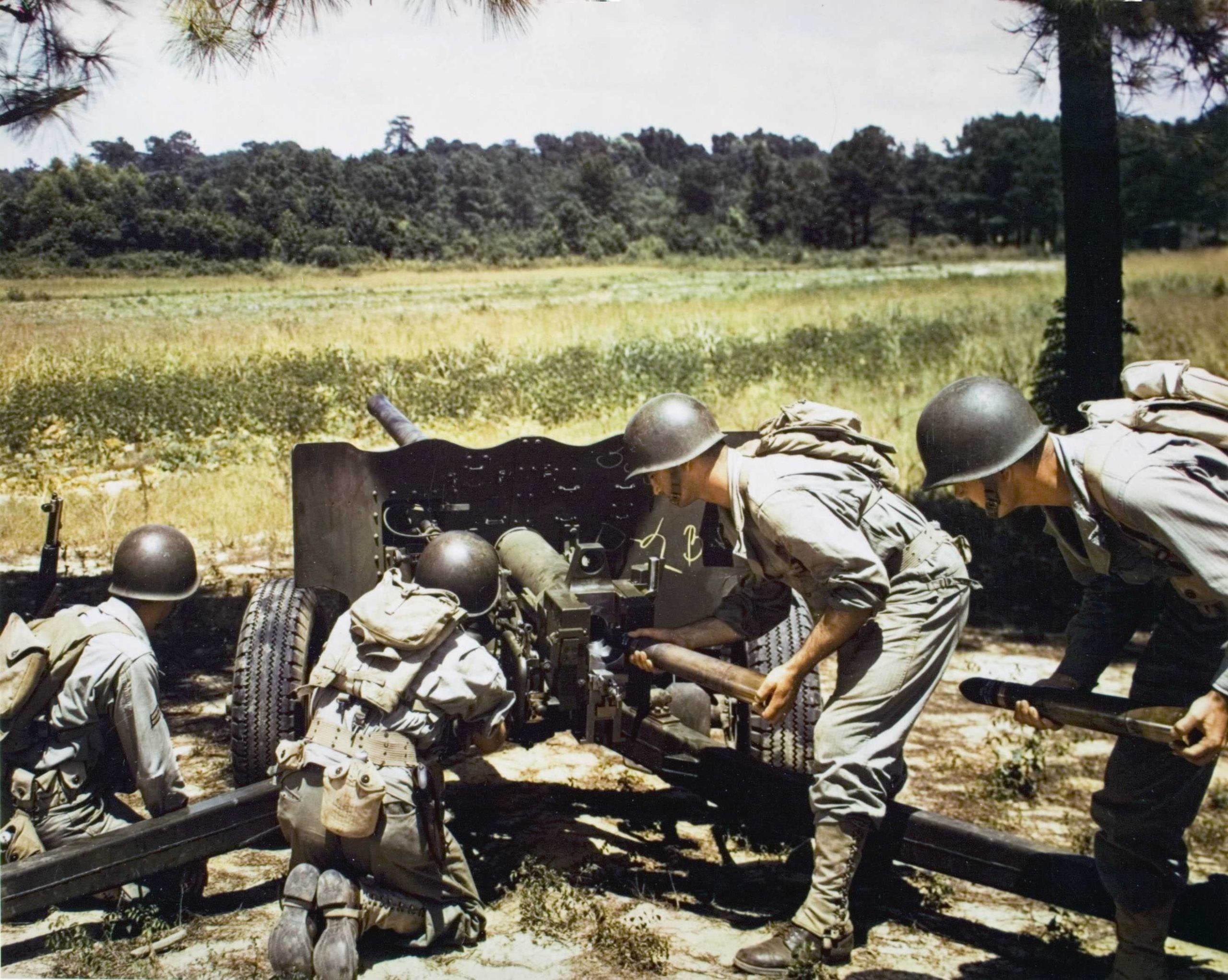 By 1943, the U.S. began to favor the M1A2 over the smaller 37MM M3 gun. Despite initial reluctance to include the weapon in Army inventory, the M1 became standard issue by May 1944. During the invasion of Normandy that June, the U.S. was equipped with Mark II and III revisions of the British QF-6, with the majority of M1s positioned elsewhere on the western front.
