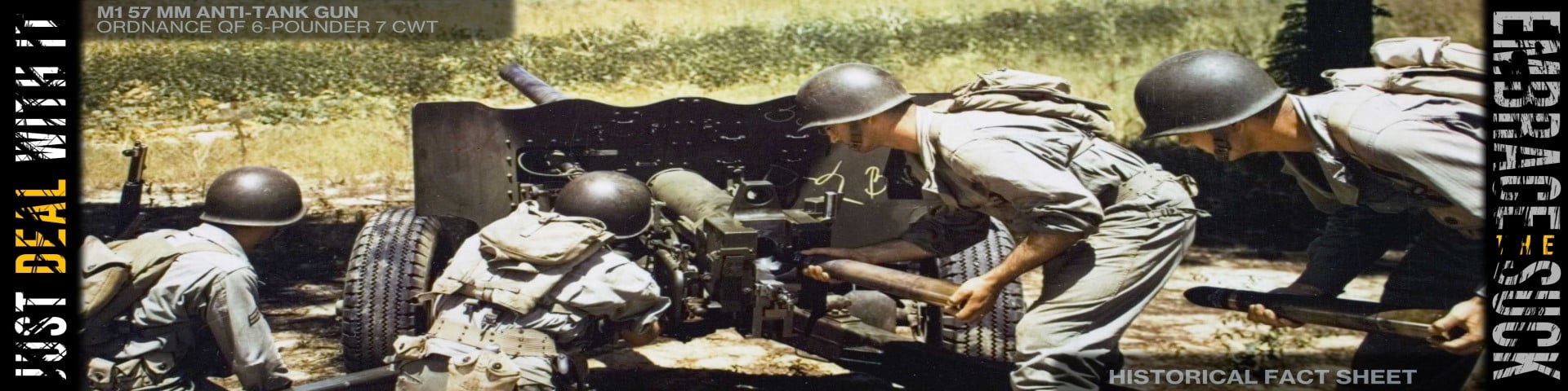 Built with the intention of destroying German tanks, the "Quick Firing" six pounder (QF-6) was a British anti-tank gun. Designed in 1940, the weapon system was designed to be a lightweight, armor-piercing system capable of being deployed in a large number of roles. Due to production issues, it did not enter service until the beginning of the North African Campaign in 1942. The American-produced M1 began production in early 1942, with the more heavily modified and upgraded version (the M1A2) entering production later that year.
