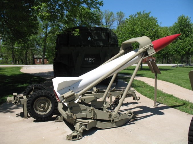 Developed to complement the larger Honest John, the MGR-3 Little John was a near-field rocket system capable of deploying atomic or high-explosive payloads at close range. The system was developed at Redstone Arsenal beginning in 1955, with the first launch of the XM47 occurring in June 1956. This first production rocket was stabilized in flight by the spinning of the rocket body. The final production variant of the rocket, the XM51, was stabilized from launch by initializing a spin on the rail of the launcher.