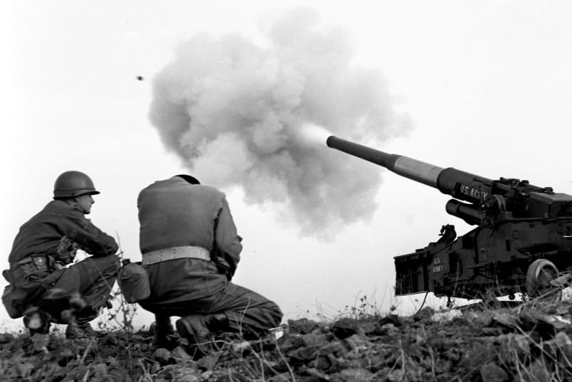 The 280-mm gun, known as “Atomic Annie”, fires a nuclear warhead 10,000 yards downrange as 3,200 Soldiers and civilians are on hand to witness the United States’ only nuclear artillery test. The projectile is similar in design and yield (15 kilotons) to the “Little Boy” dropped on Hiroshima. The shot is known as “Grable”, part of the UPSHOT-KNOTHOLE atomic tests.