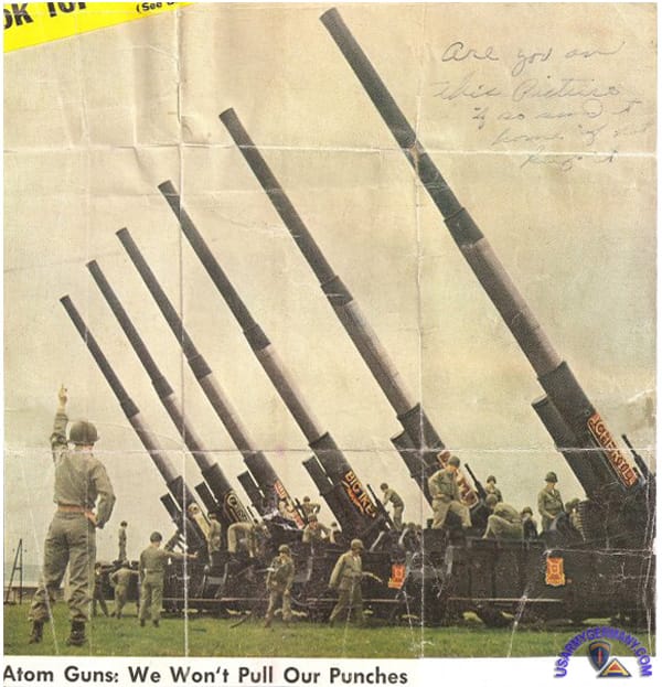 There is a doubt that the cannon at Fort Sill is the Atomic Annie. A mix up in the shipping led to Atomic Annie being shipped to Germany and Sad Sack remaining at Fort Sill. Of the six guns 3 at the 867th FA BN and 3 at the 868th FA Bn. is it possible that Atomic Annie could have been one of them?? My assignment was with the 867th 1957-60